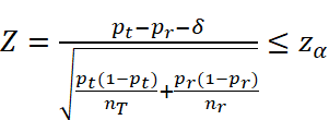 *two-tailed test; /* z-score for Non-inferiority */